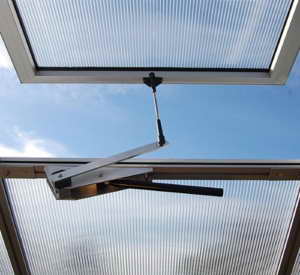 Praktisches Feature: Das Öffnen der oberen Türhälfte lässt sich auch mit einem automatischer Türöffner ausüben (als extra Zubehör hier bei Amazon erhältlich), Abhängig von der Temperatur im Inneren des Treibhauses, kann dann die Tür als Fenster zusätzlich automatisch geöffnet und geschlossen werden.